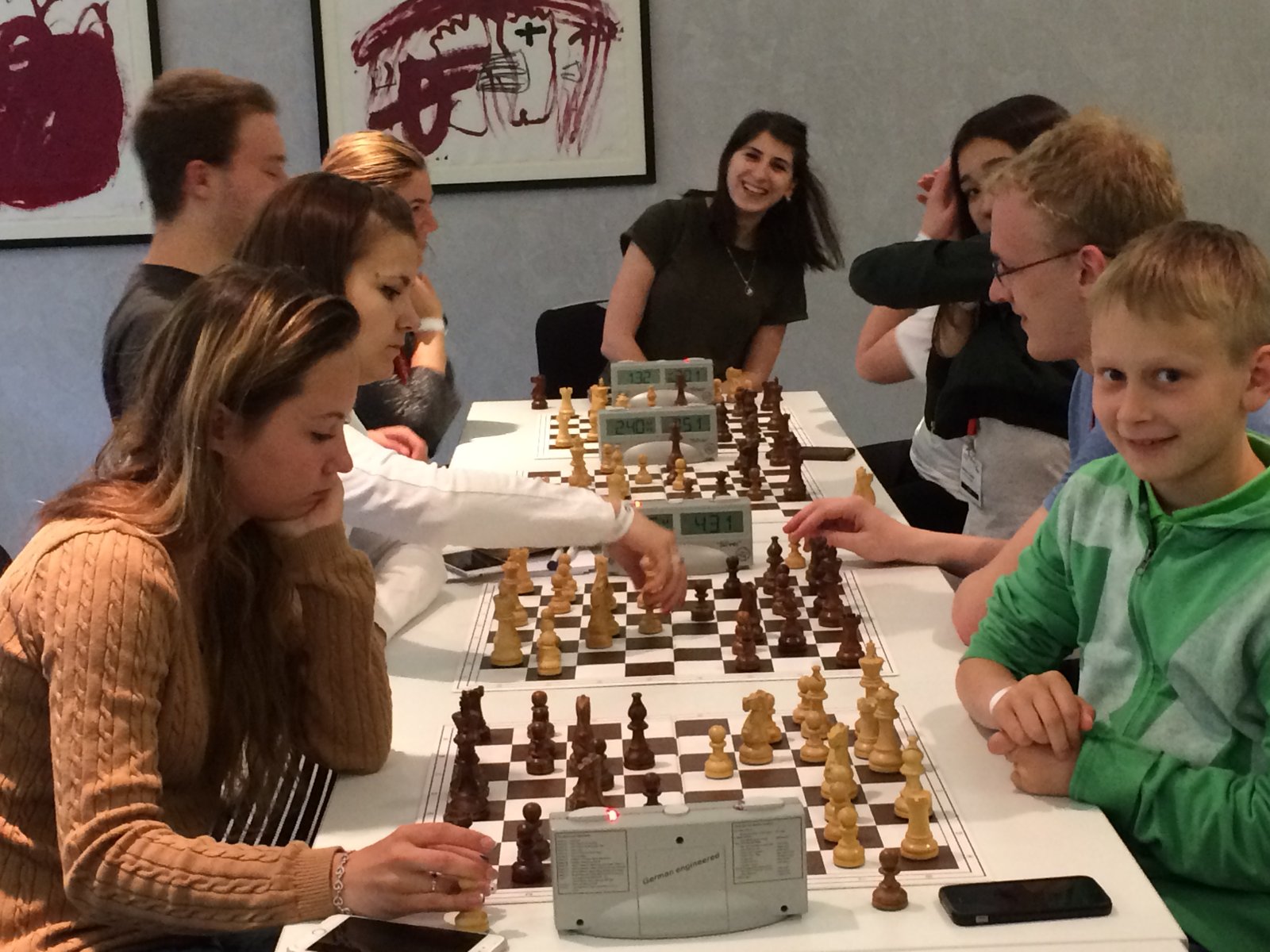 Auch zur Entspannung muss es Schach sein: unsere Starter beim Tandem-Blitz |