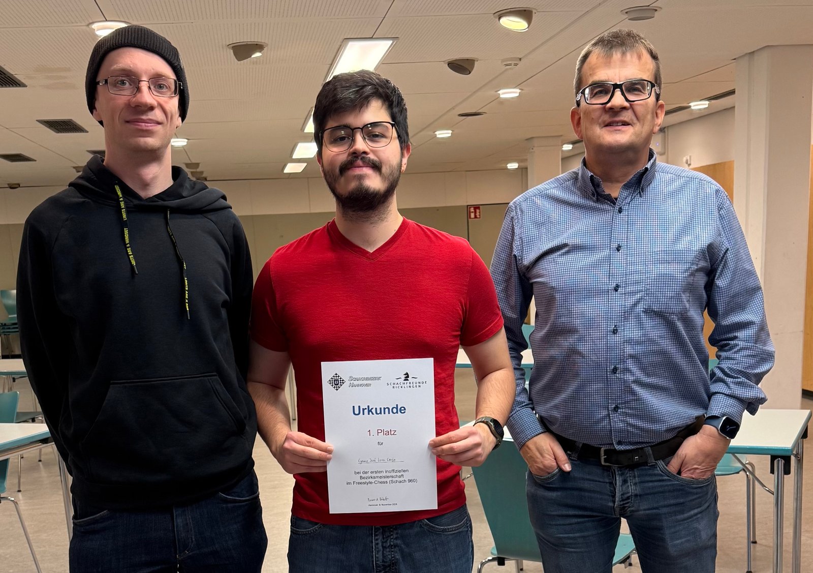 Der erste Bezirksmeister im Schach 960 heißt Cyrano José Lossi Perón und ist der Jugendtrainer der Schachfreunde Ricklingen. Cyrano konnte sich nach einem zwischenzeitlich spannenden Kopf-an-Kopf-Rennen durchsetzen. Am Ende lag er knapp vor dem Zweitplatzierten Jörg Witthaus, dem einzigen Spieler, der gegen Cyrano gewinnen konnte.