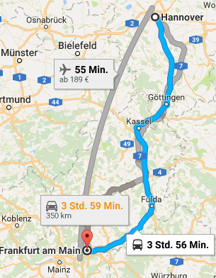 Als wir in Franfurt-Süd ankommen, greifen wir den Tip einer Mitreisenden auf