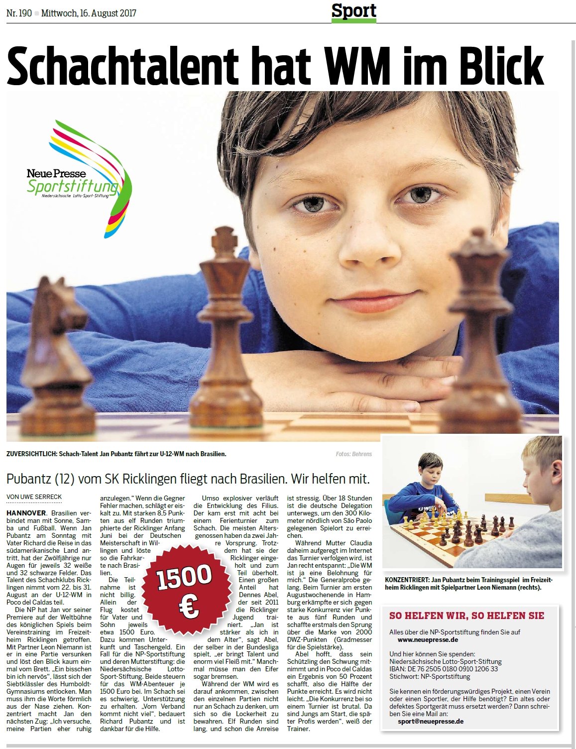 noch unseren Sponsoren danken: der Neue-Presse-Sportstiftung und der